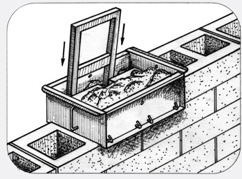 Возведение стен ТИСЭ начинается с монтажа формы. Ее устанавливают непосредственно в стену , рядом с уже отформованным блоком. Причем формовка блоков происходит слоями. Всего за день можно уложить один слой блоков , если же на улице теплая погода , то установка каждого последующего ряда может производится через 4 часа.