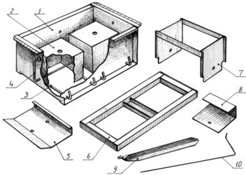 Также при формовке необходимо предусматривать такие вопросы , как устройство скрытой проводки , окон вентиляции и прочих коммуникаций. Поскольку в данном случае необходимо уложить вкладыш подходящего размера , который удаляться после распалубки.Детали модуля ТИСЭ