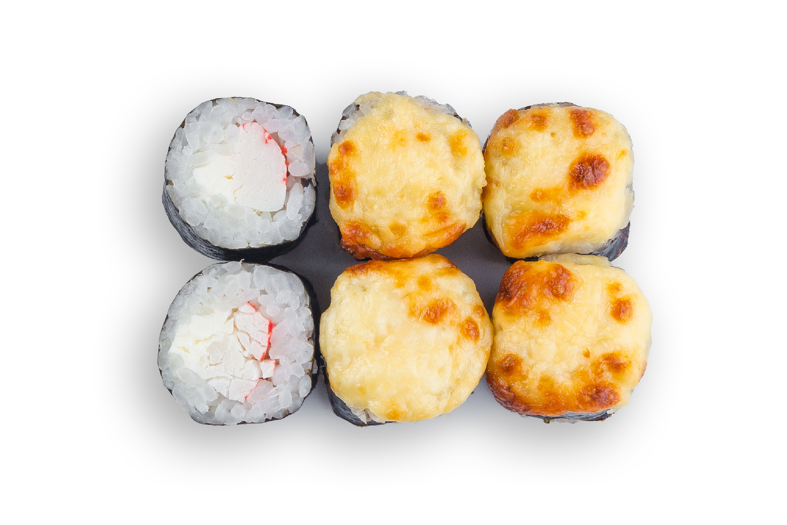 Имитация краба, сливочный сыр, майонез, сыр гауда.