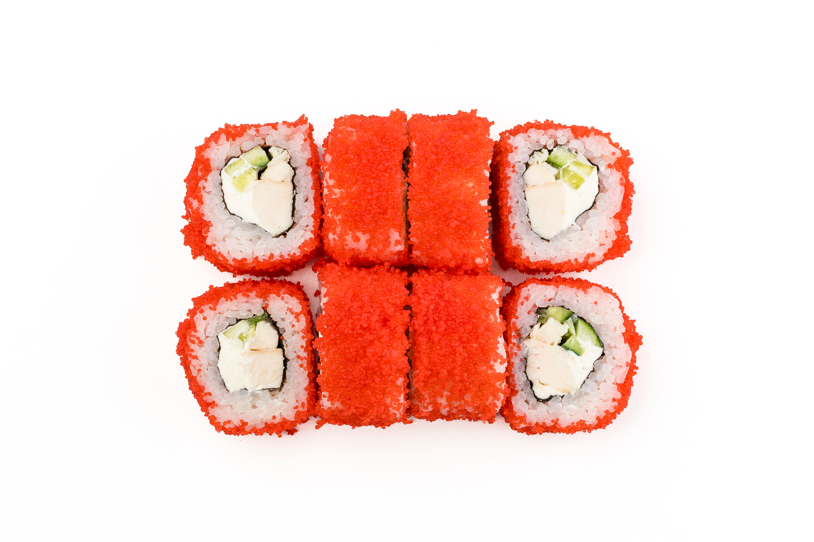 Копченая курица, огурец, сливочный сыр, икра тобико