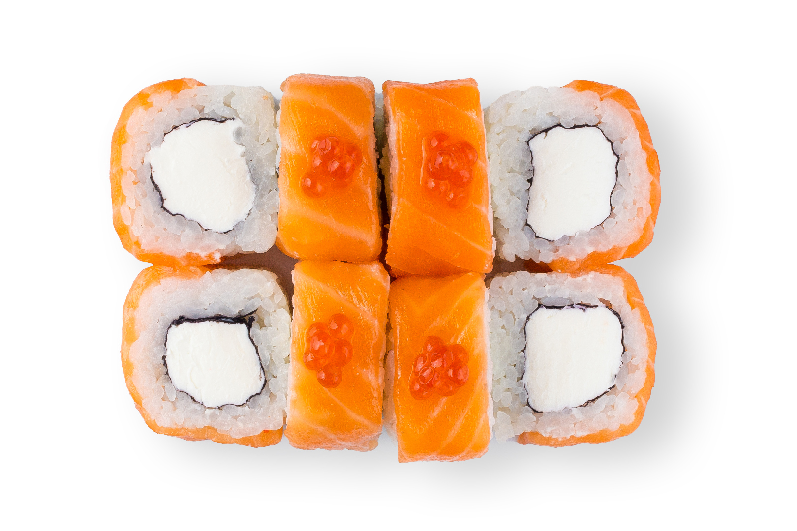 Угорь, лосось, тигровые креветки, сливочный сыр
