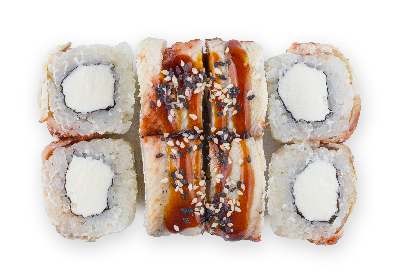 Лосось, тигровые креветки, сливочный сыр, икра тобико