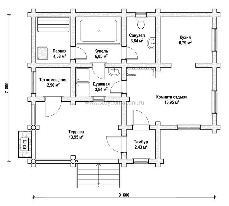 9.6 × 7.8 м