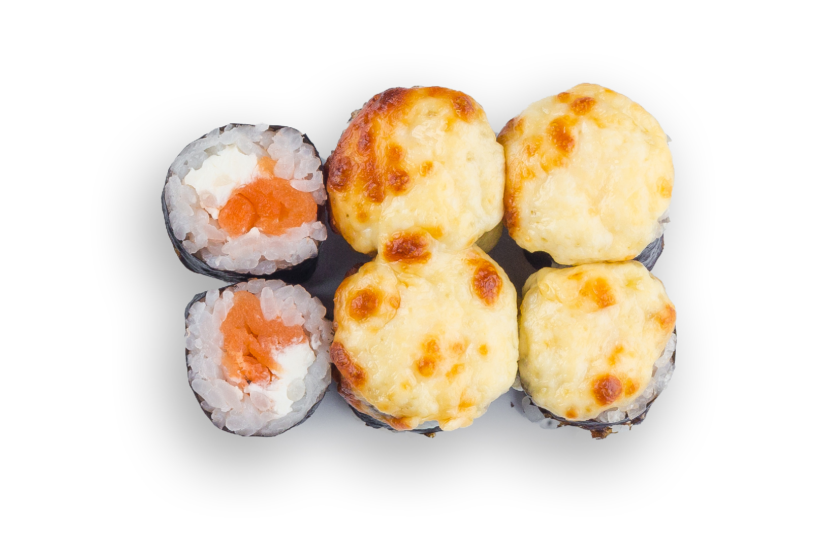 Имитация краба, огурец, сливочный сыр, сырный соус (майонез, сыр, икра тобико)