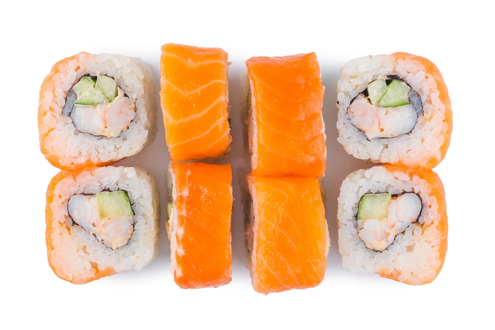 Тигровые креветки, болгарский перец, сливочный сыр, икра тобико