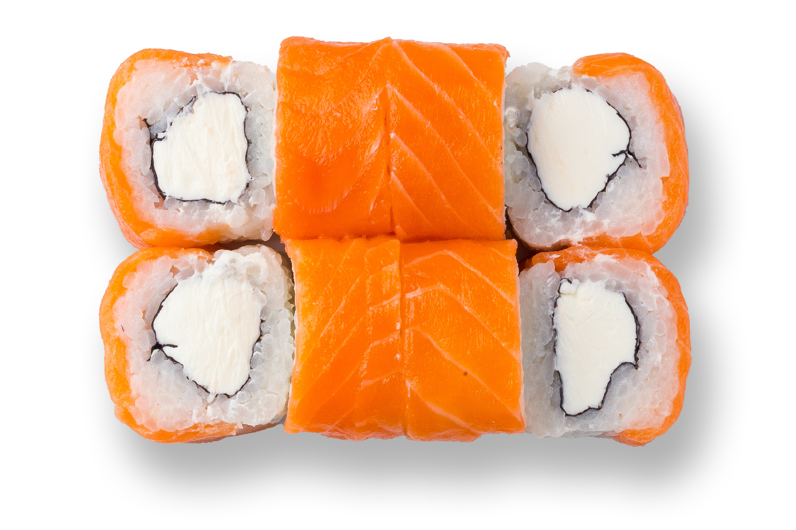 Бекон, сливочный сыр, огурец, лук фри, икра тобико, сырный соус (майонез, сыр, икра тобико)