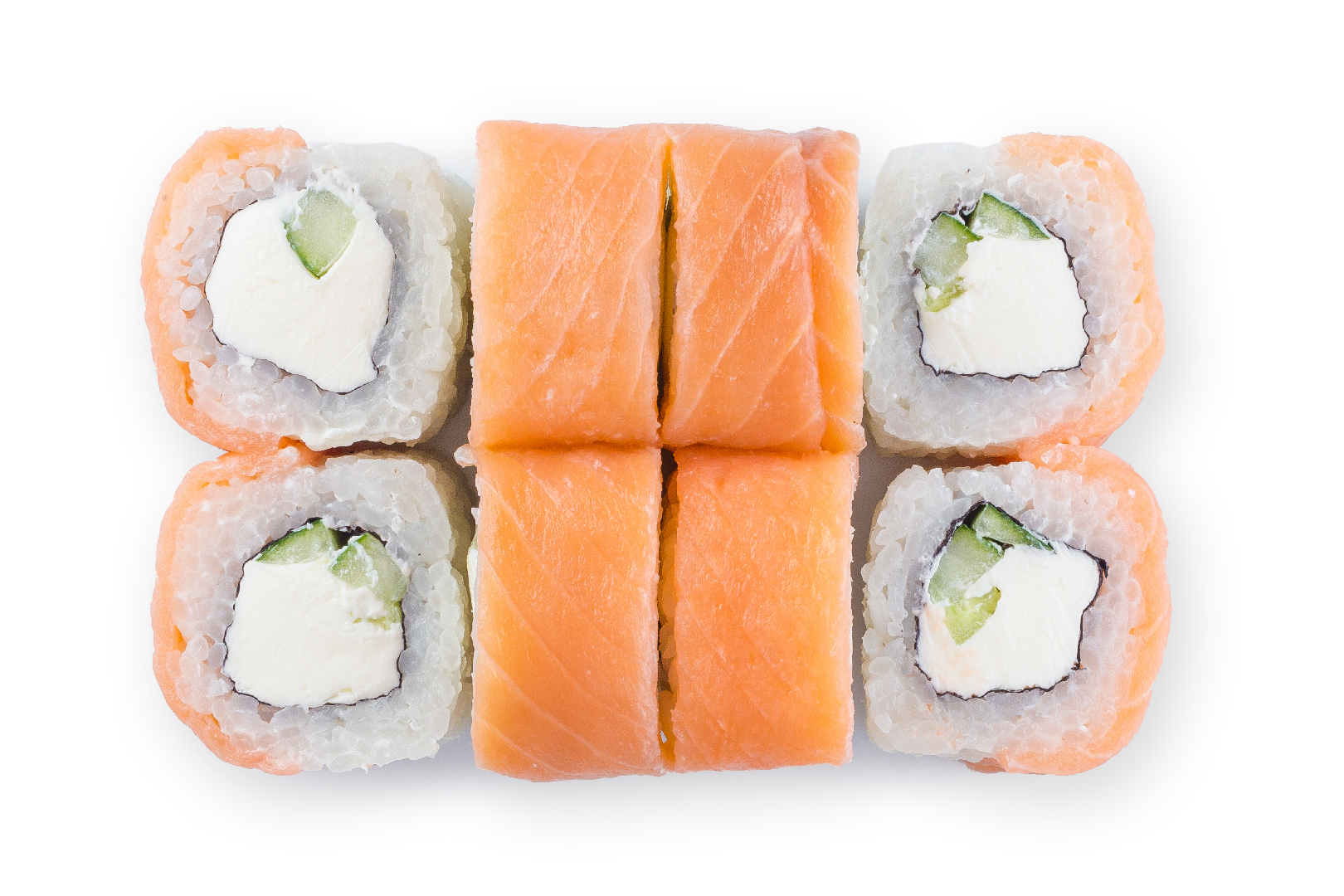Тигровые креветки, болгарский перец, сливочный сыр, икра тобико