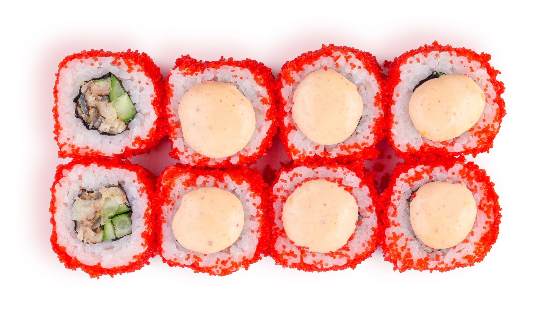 Угревидный кларий, огурец, спайс соус, икра тобико