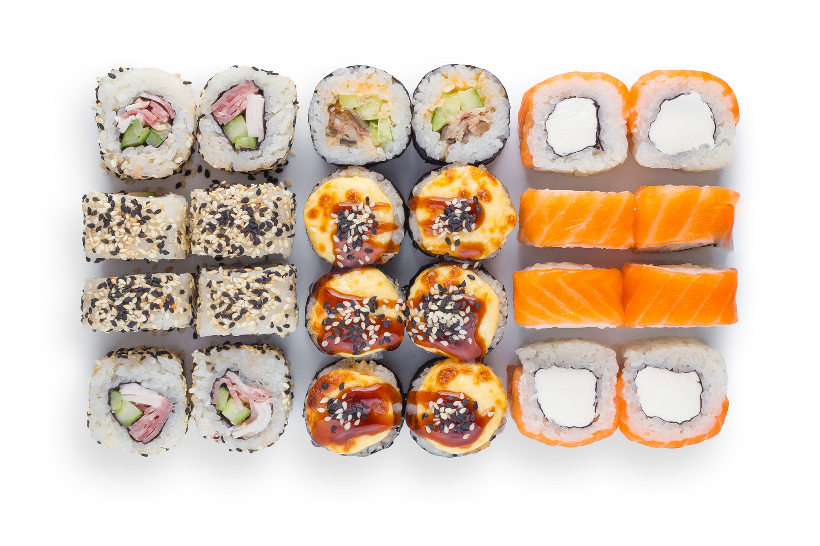 Угревидный кларий, огурец, сливочный сыр, икра тобико