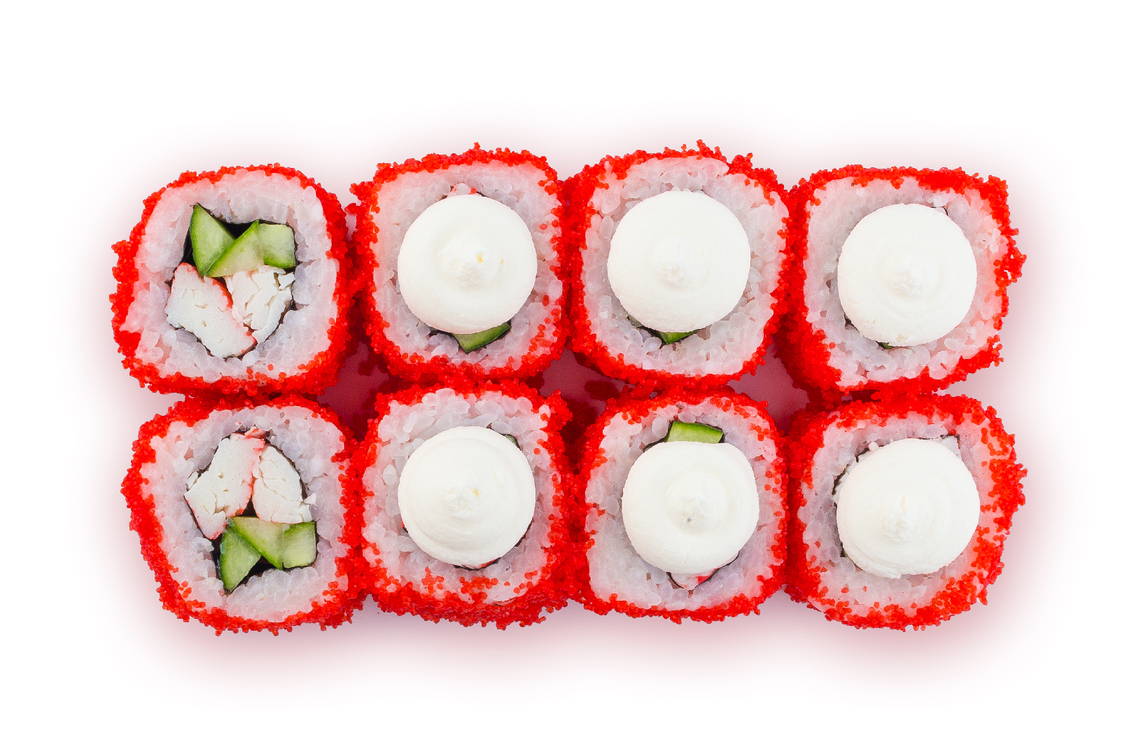 Имитация краба, сливочный сыр, огурец, икра тобико