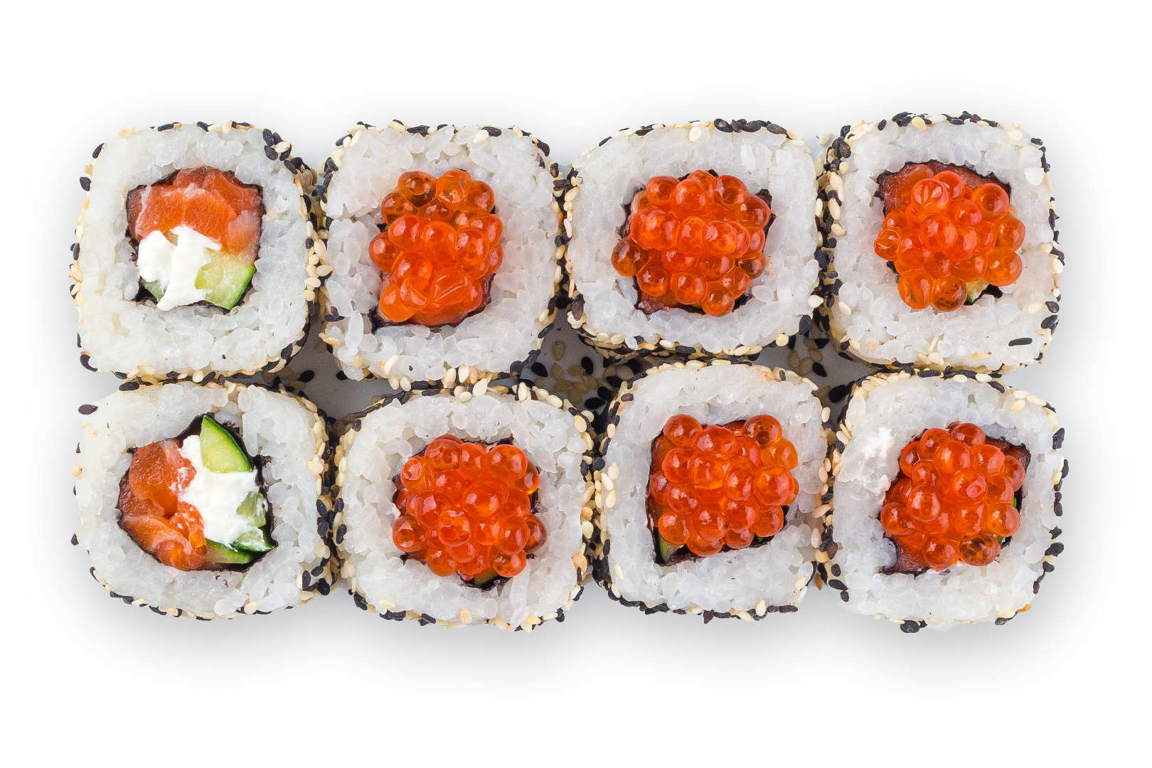 Лосось, огурец, сливочный сыр, икра лосося, кунжут