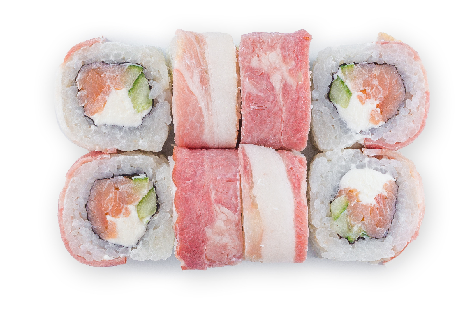 Бекон, копчёный лосось, сливочный сыр, огурец