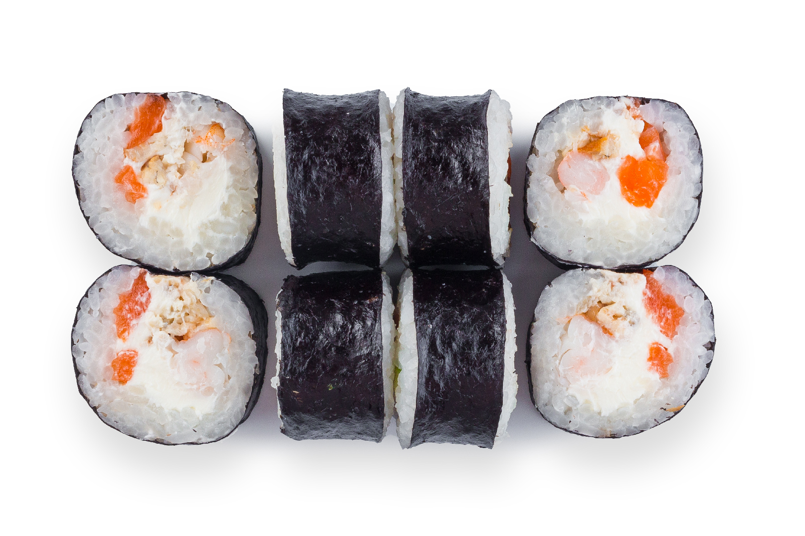 Угорь, лосось, тигровые креветки, сливочный сыр