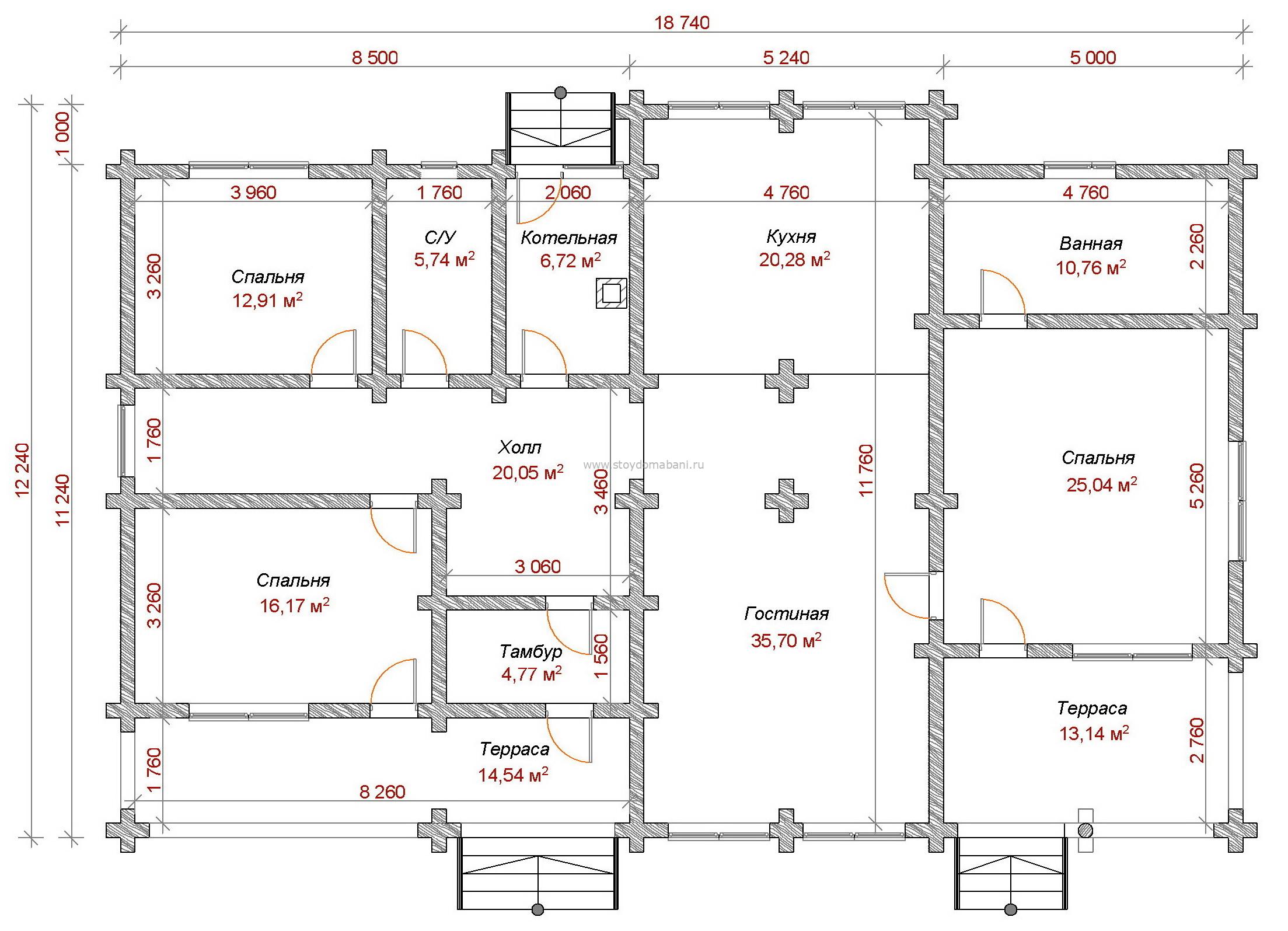 18.74 × 12.24 м