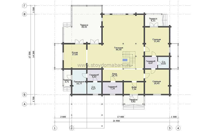 21.9 × 17.5 м