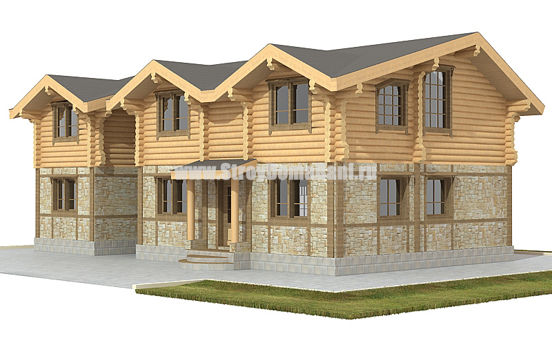 Проект загородного дома типа «таунхаус». Достаточно простая архитектура дома разнообразится тремя вальмами в двускатной крыше. Большое достоинство дома, это кирпичные первые этажи жилой части дома и отдельно построенной двухэтажной секции. Обе части дома связаны между собой переходом на уровне второго этажа и общей крышей, что визуально объединяет их в одно целое и оставляет приятное впечатление от проекта. Такой дом идеально подойдет мастеру умеющему работать с электроинструментом и нуждающемуся в постоянной, оснащенной всем необходимым мастерской, а также человеку любящему активный отдых и игру на бильярде.
