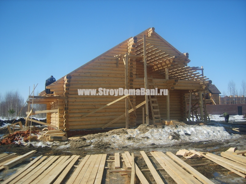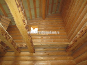 Монтаж потолочных балок сруба