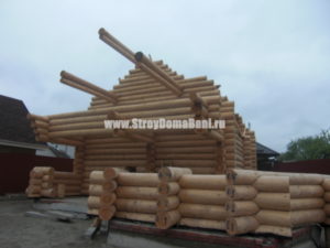 Сборка фронтонов и коньковых бревен